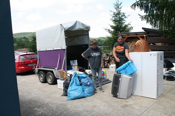 Hier luden wir Hunde - und Katzenfutter aus, so wie Decken, Hundeboxen und Hundebetten